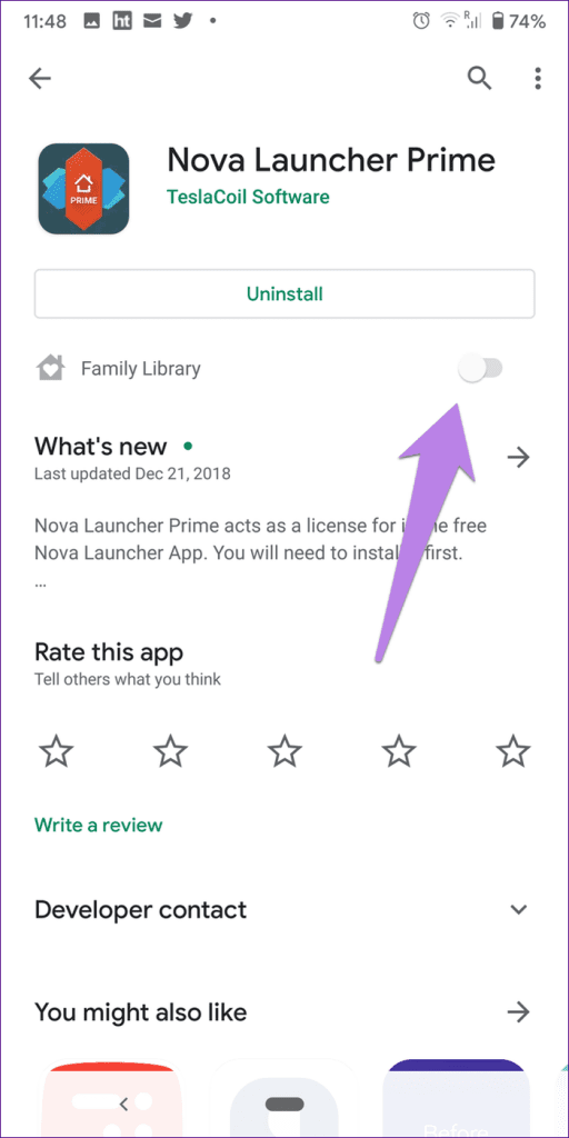 Step 3: When the manual option is enabled, you need to visit each app’s page separately and enable the ability to share it via family sharing. To do so, turn on the Family Library toggle on the app page.