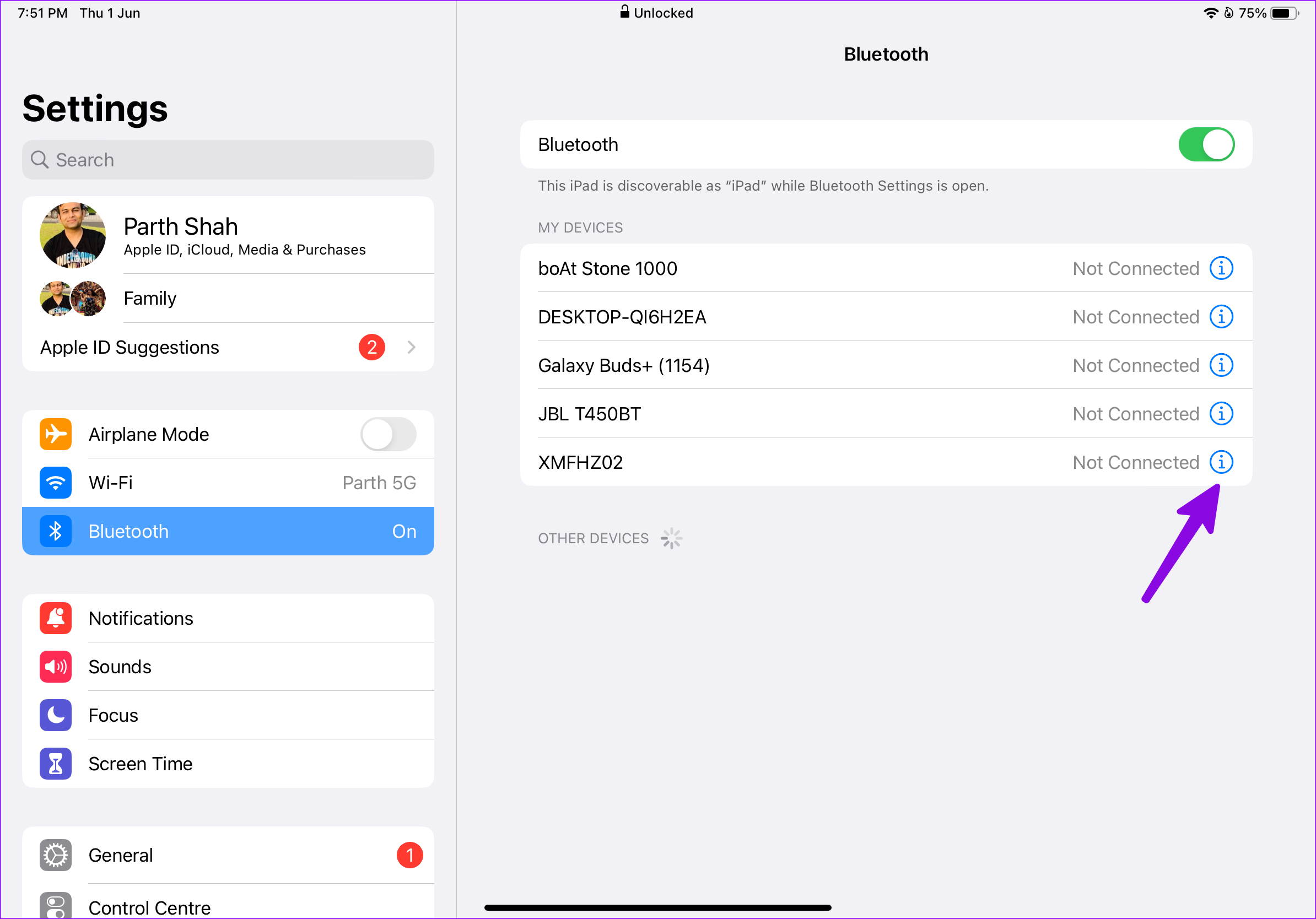 Step 1: Open the Settings app and go to Bluetooth. Tap the info menu beside the relevant keyboard.