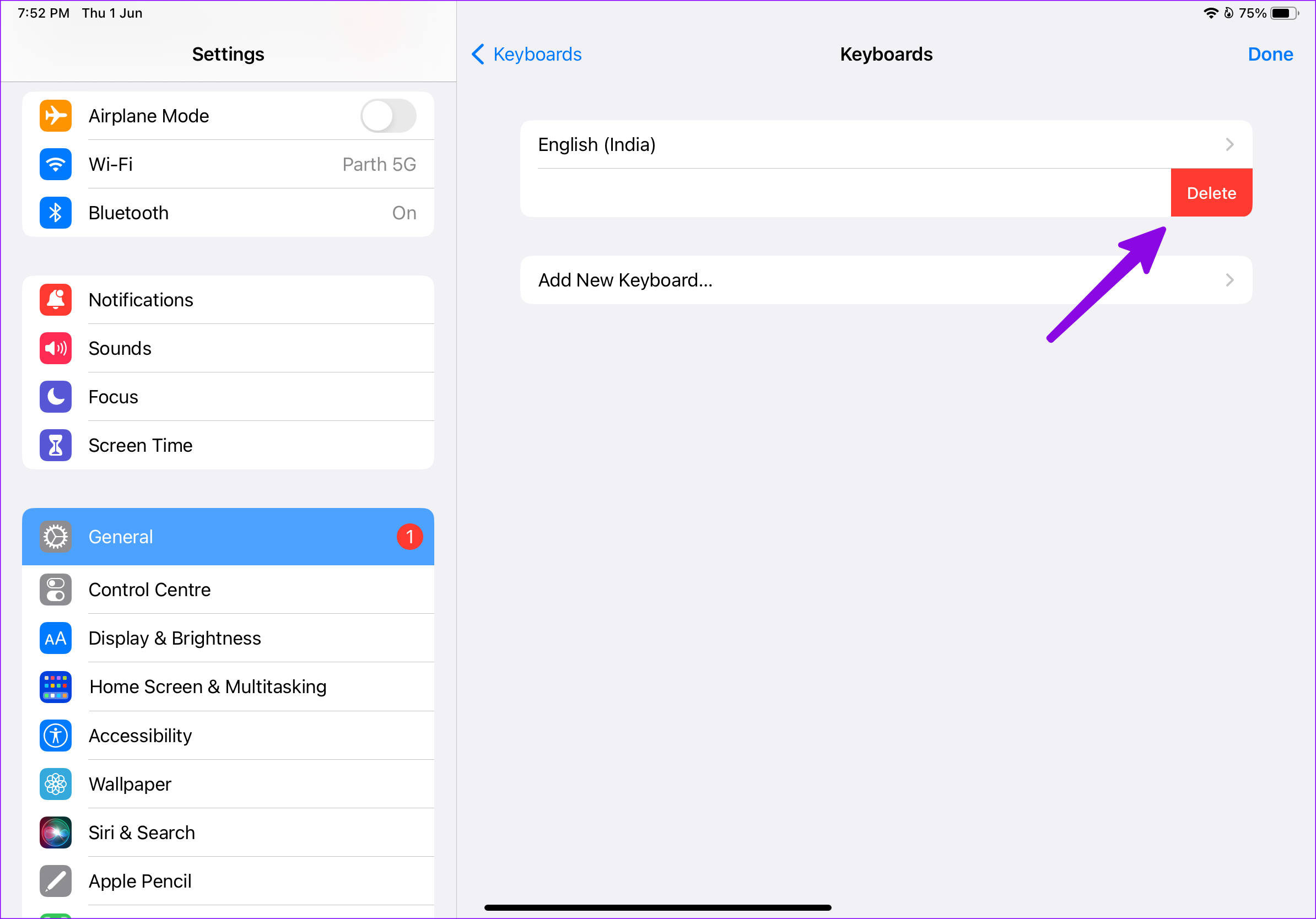 Note: Repeat these steps to delete any other keyboard app from your iPad.
