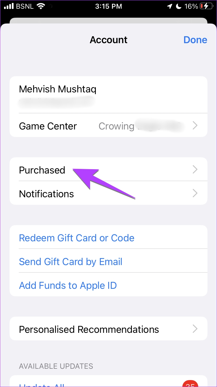 Step 1: Open the App Store on your iPhone. Tap on the account icon at the top and go to Purchased on the next screen.