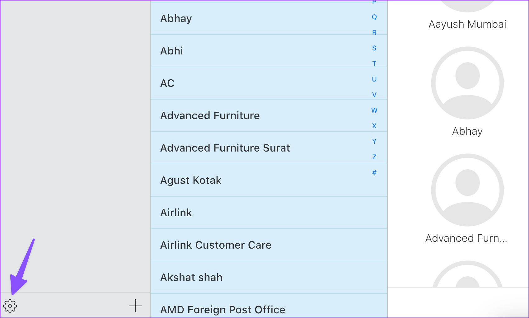 Step 3: Press Ctrl + A (Windows) or Command + A (Mac) to select all contacts. Click the Settings gear icon at the bottom-left corner.