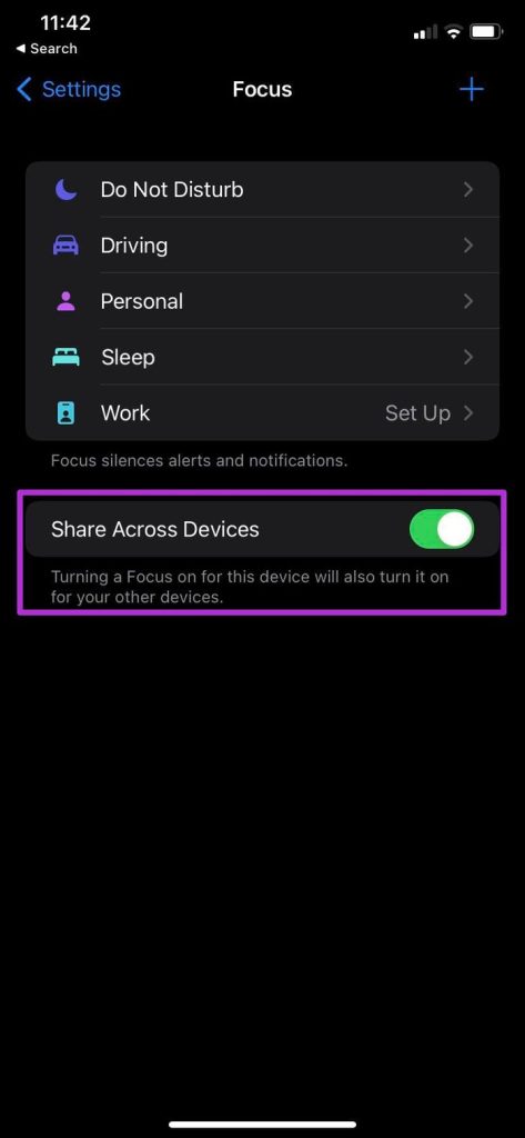 Fix 3: Disable Focus Share Across Devices