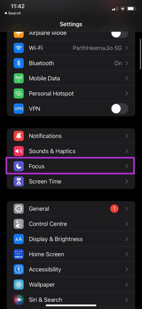 Step 1: On your iPhone, navigate to Settings > Focus.