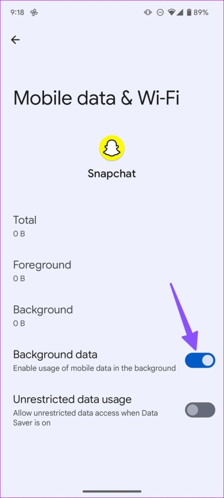 You should ensure that Snapchat is allowed to access mobile data in the background. Furthermore, ensure there aren’t any restrictions on data usage for Snapchat. Here’s how to do it: