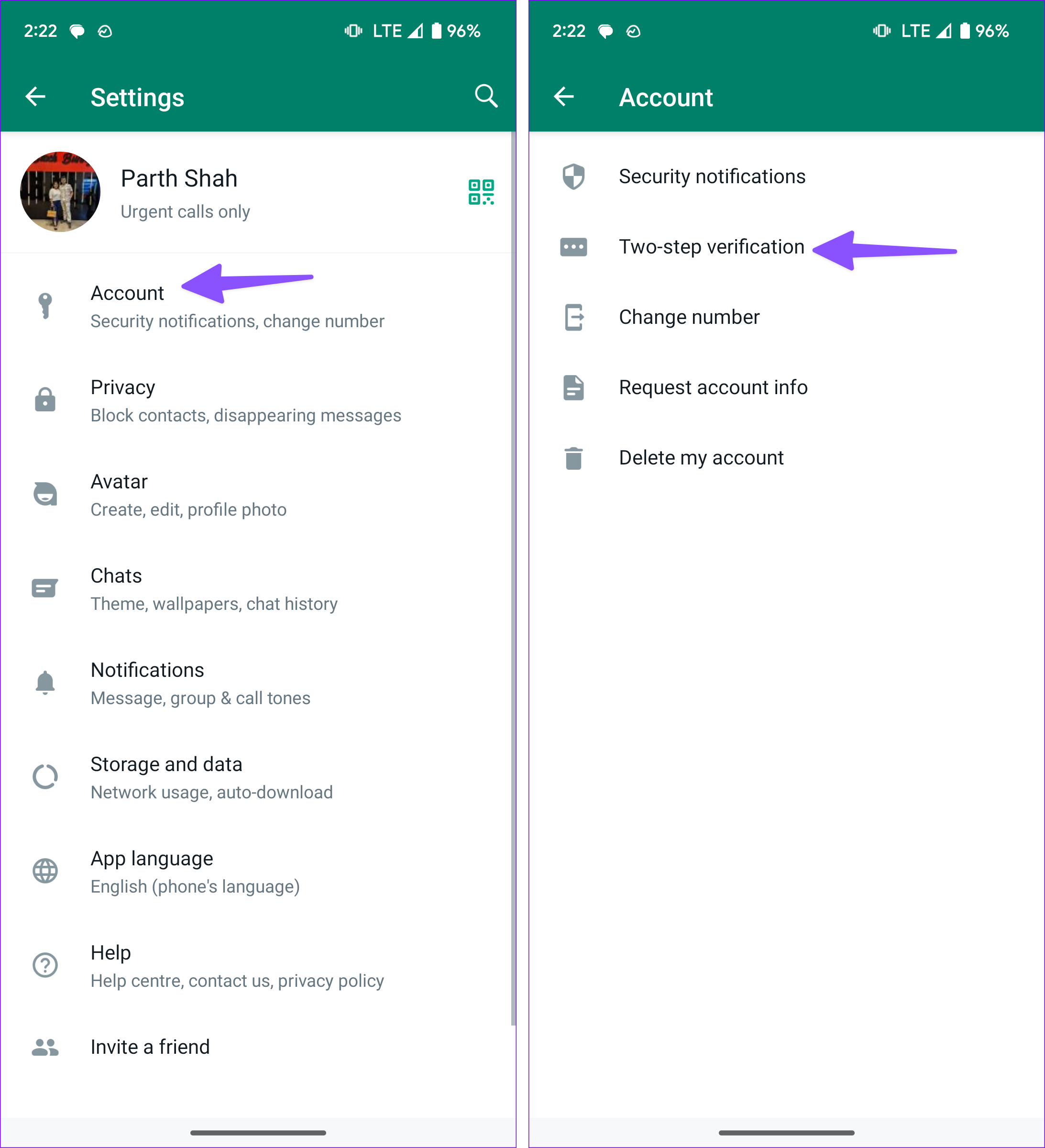 Step 2: Tap on Account. Here, tap on Two-step verification.